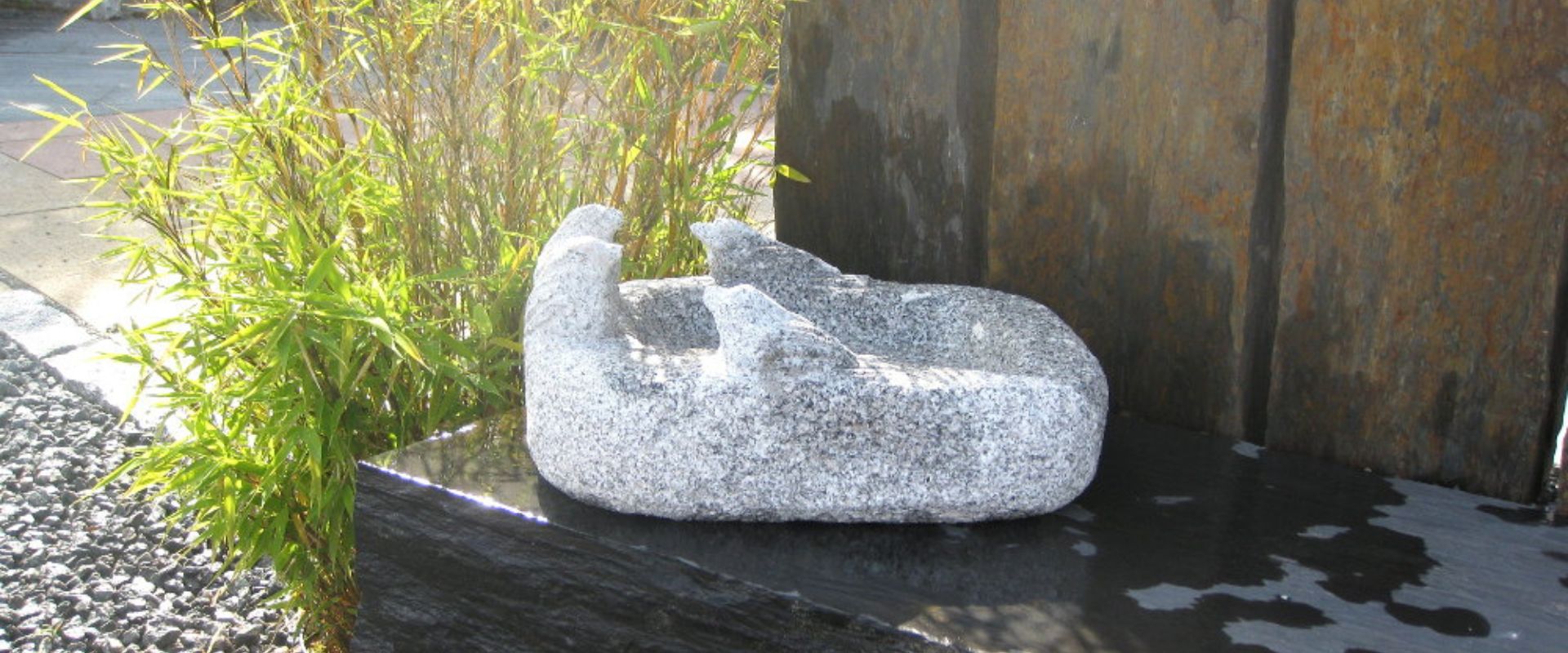 Vogeltränke Form Blatt KLEIN, mit SchneckeGröße: ca. 35 cmhandgearbeitet frostsicher Dekoration für Innen und Außen Wegen der großen Auswahl an Quellsteinen und Findlingen, die wir in unserem Sortiment führen, können wir nicht jeden Stein vorab verwiegen. Deshalb sind die Gewichte der Quellsteine und Findlinge oft rechnerische Werte, die sich aus Abmessung und Erfahrungswerten ergeben. Da die Findlinge oft Ausbuchtungen und kuriose Formen haben, ist ein möglichst genauer Wert natürlich schwierig zu errechnen. Ein konkretes Gewicht wird erst ermittelt, wenn ein Versandgewicht festgestellt werden muss. Wenn das exakte Gewicht für Sie notwendig ist, bitten wir Sie mit uns Kontakt aufzunehmen. Alle unsere Natursteinfiguren sind handgearbeitet und können deshalb in Form, Farbe, Größe und Gewicht leicht variieren. Naturstein unterliegt Schwankungen in Farbe, Maserung und Form. Quarzadern, Poren, Farb- und Zeichnungsunterschiede sowie Einsprengungen stellen somit keinen Mangel dar, sondern zeigen die Einmaligkeit des Materials. Verschiedene Steinsorten enthalten Eisensulfide die an der Oberfläche oxidieren können. Dies ist eine typische Gesteinseigenschaft und berechtigt nicht zur Reklamation.