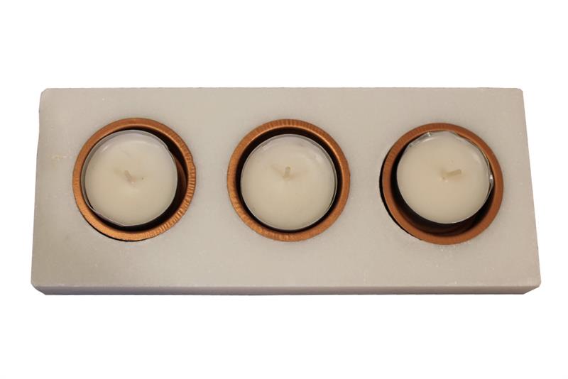 - 3 Teelichteinsätze in Kupfer (Teelichter im Lieferumfang nicht enthalten)