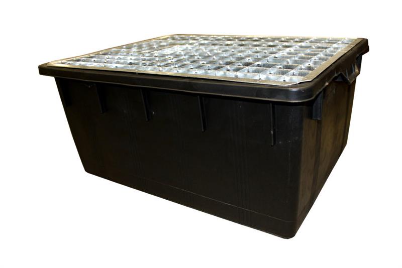 notwendiges Zubehör: Einsatzstück aus Metall zum Abdecken der Öffnung 20x20 cm und Becken Serie Quadro von Ubbink (in passender Größe)
