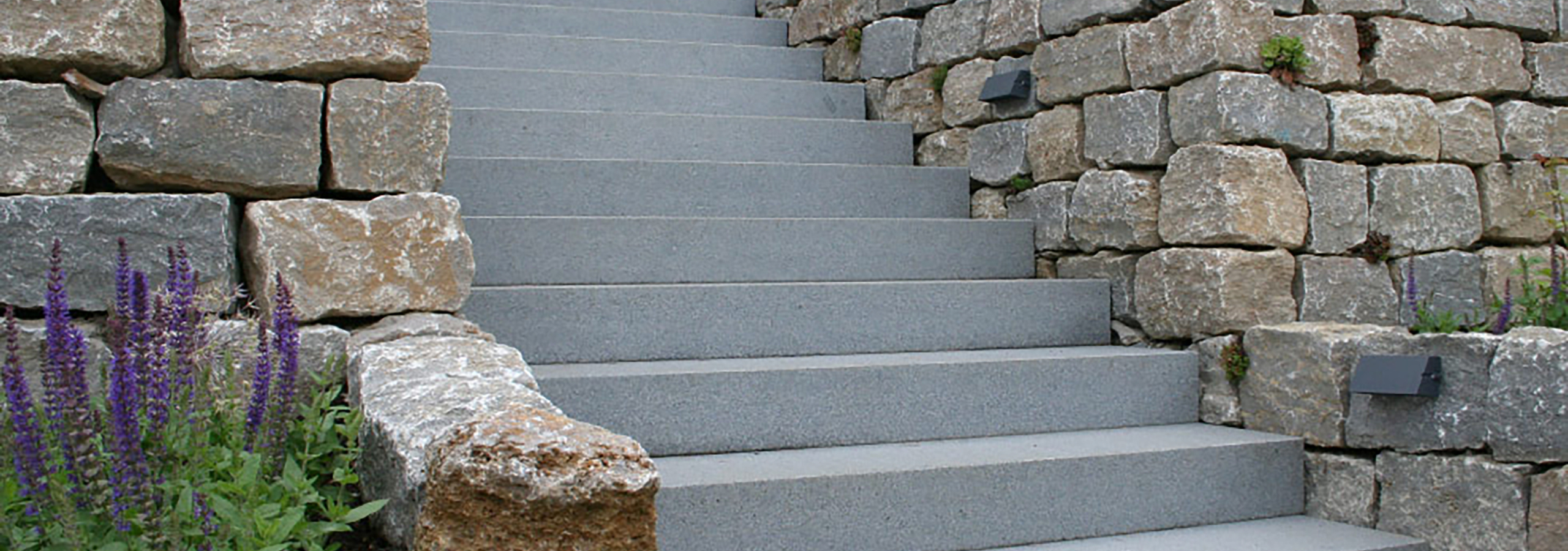 Gestalten Sie Ihre Außenbereiche mit hochwertigen Blockstufen aus Naturstein - Ihr Natursteinzentrum Rhein Main steht Ihnen gerne zur Seite!