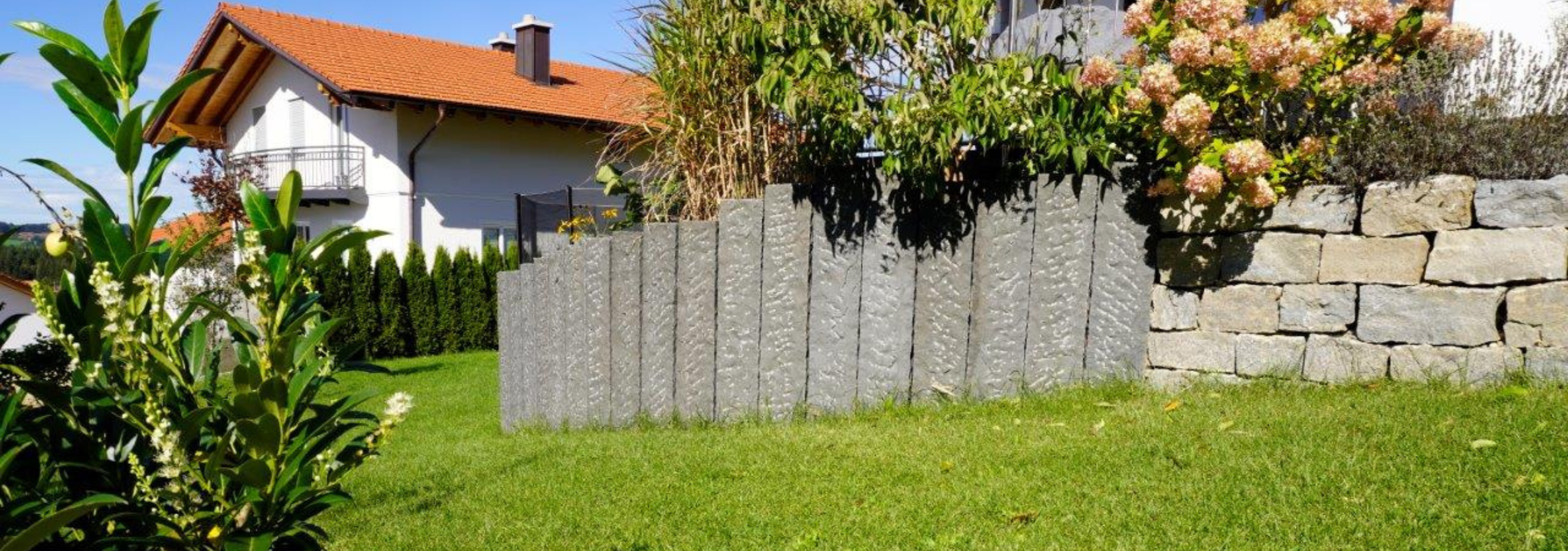 Palisaden eignen sich perfekt zur Einfassung von Pflanzterrassen, Hochbeeten, Treppenanlagen und Geländeabtrennungen. Sie sind auch ideal für Stütz- und Einfassungsmauern sowie zur Sicherung und Befestigung von Böschungen. Unsere Palisaden werden handgearbeitet und sind in gespaltener oder gestockter Oberfläche erhältlich.