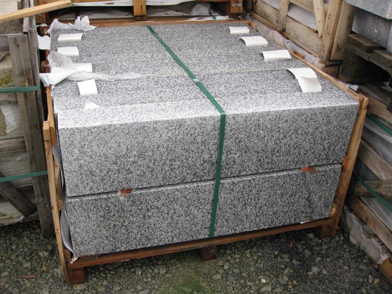 Palisade aus Granit grau, 10 x 25 x 75cm, ALLSEITS GEFLAMMT, 2mm Fase