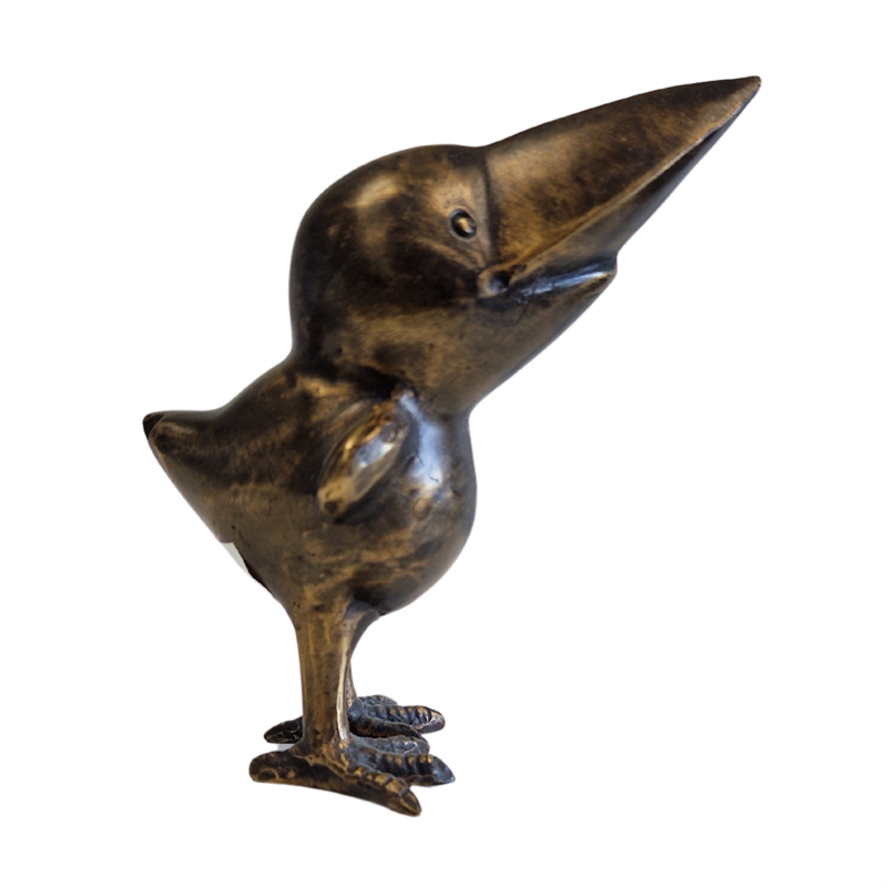 Rabe aus Bronzeguß, klein, mit Blick nach oben