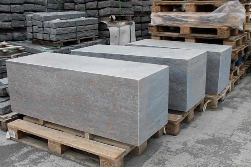 Sitzsteine aus Muschelkalk, allseits gesägt und gebürstet