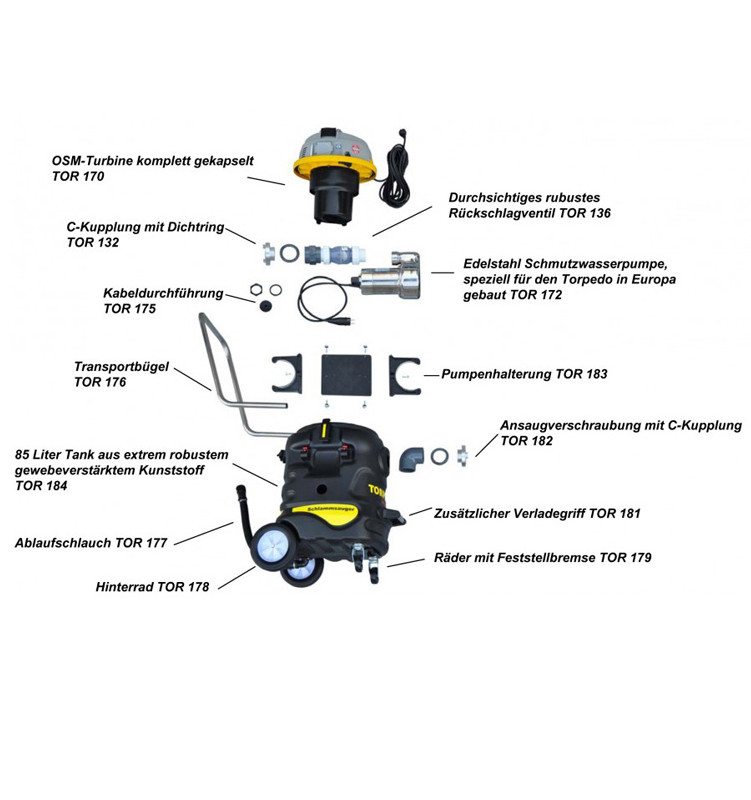 TORPEDO Teichschlammsauger mit Standard - Zubehör