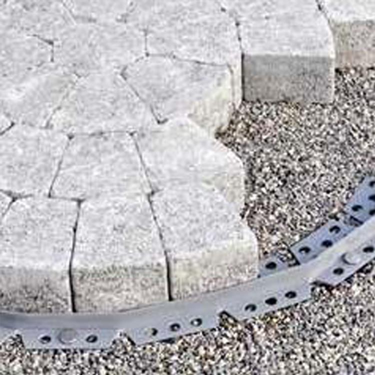 Die Profile sind sowohl für Verbundsteine als auch für Platten zu verwenden. Egal ob runde oder eckige Formen alle Wünsche können realisiert werden. Eine Fixierung der Profile erfolgt durch lange Stifte im Erdreich.